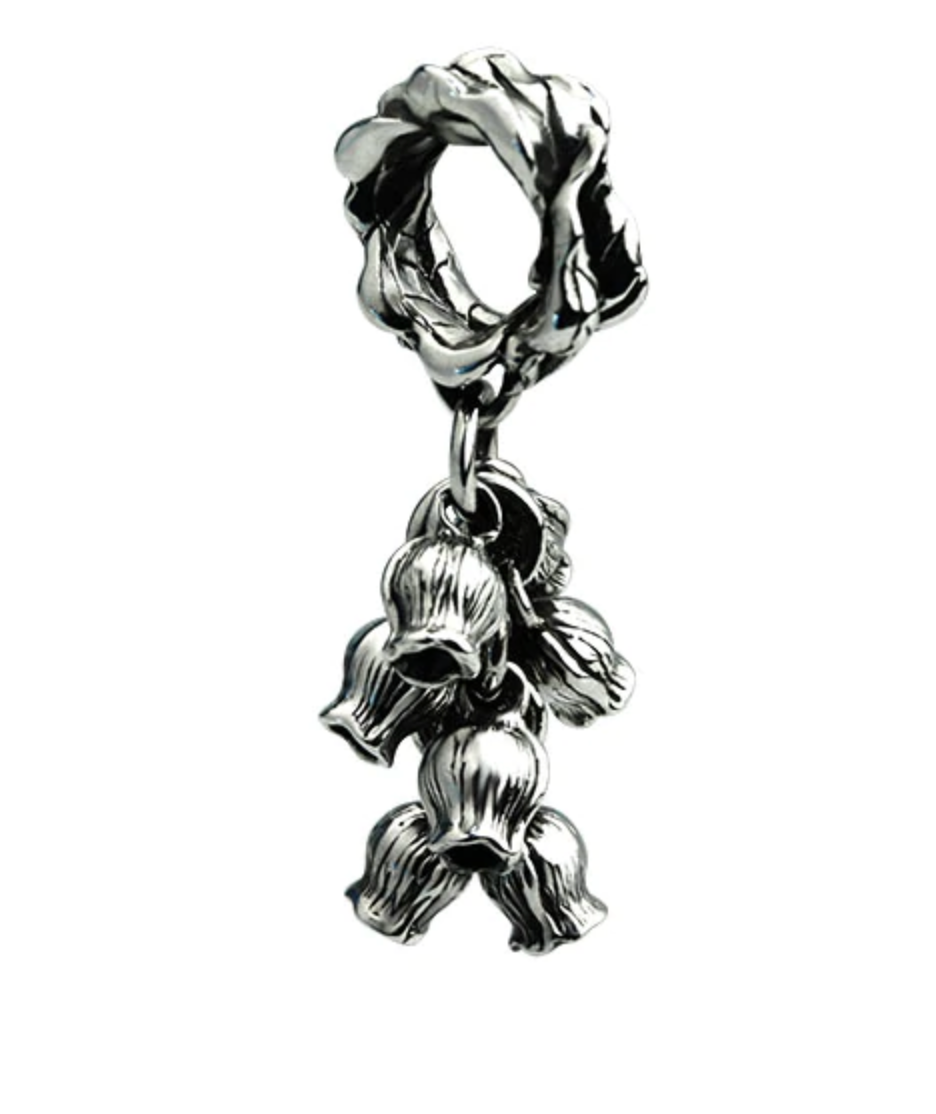 Because Eucalyptus is so resilient against brush fires, the tree and its fruit have come to symbolize survival, strength, protection, transformation, fertility, and spiritual nourishment. OHM celebrates all of these qualities and more with this beautiful GUMNUTS silver cluster dangling from a bail of Eucalyptus leaves.