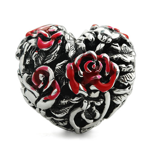 From the story of Alice in Wonderland OHM offers this rose bush heart of overlapping blooms colorfully, ahem, accented with red enamel paint as part of OHM’s Alice in Wonderland collection.