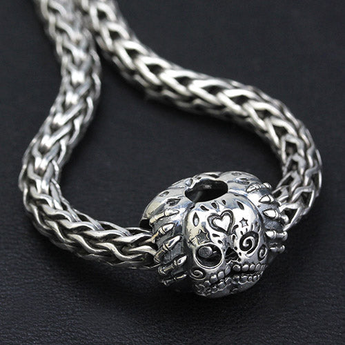 INNER GHOUL is an enchanting bead that captures the essence of Halloween. Crafted from sterling silver with intricate Dia De Los Muertos-inspired flourishes. INNER GHOUL is not just a bead; it’s a symbol of courage, having faced and conquered fears. Designed with heart and creativity, this bead is perfect for those who embrace the spooky spirit and seek a piece to create your story. Let INNER GHOUL shine brightly in your collection, a testament to bravery and Halloween magic.