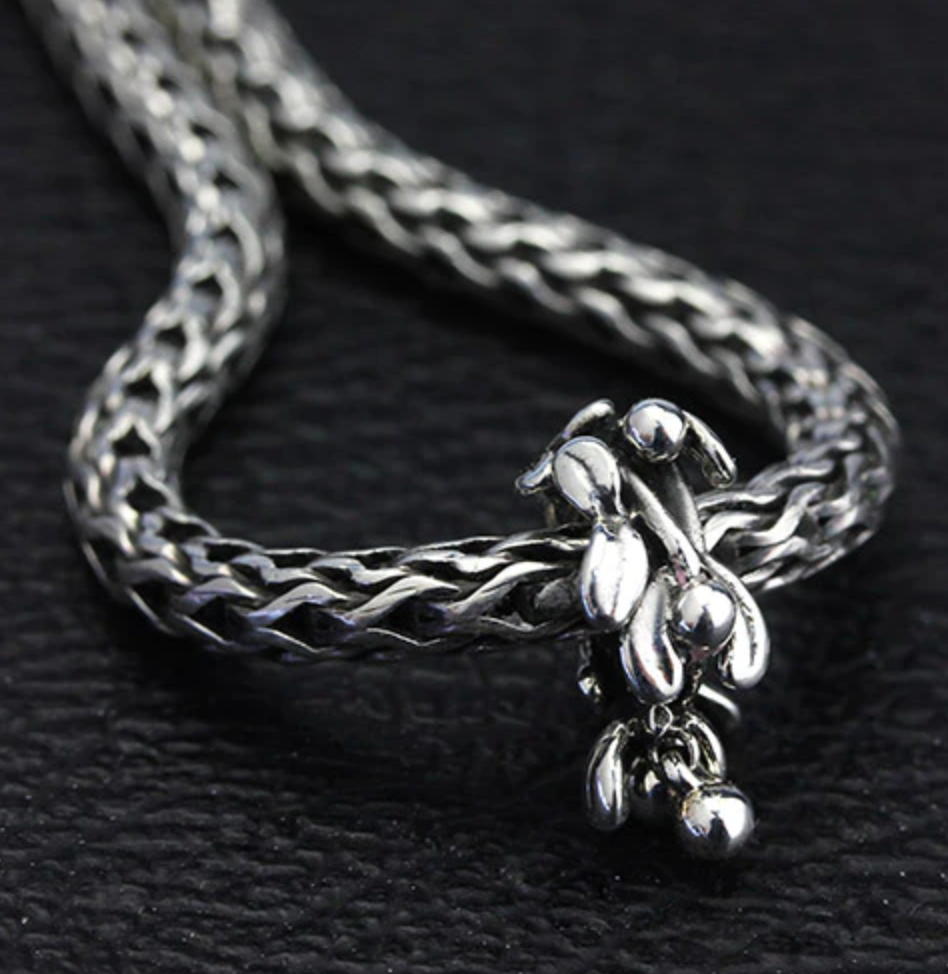 OHM has created this graceful and elegant MISTLETOE WREAT in the sinuous style of 1890 Art Nouveau. Several berries dangle with scintillating movement, and your bracelet comes alive with eye-catching dazzle.
