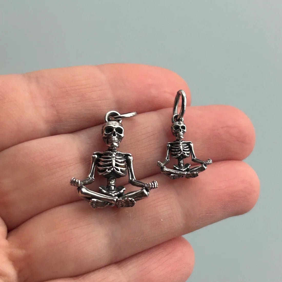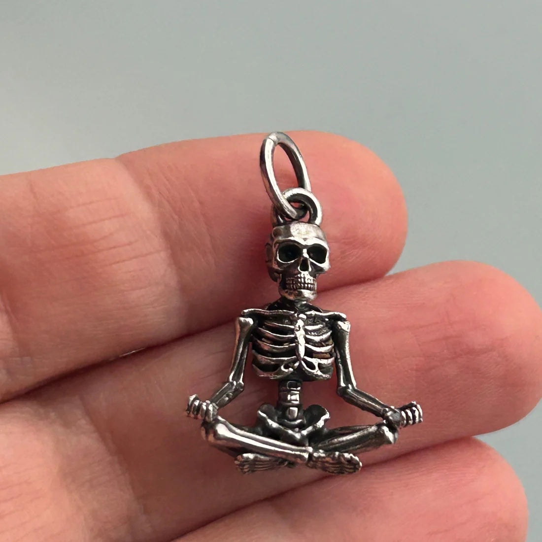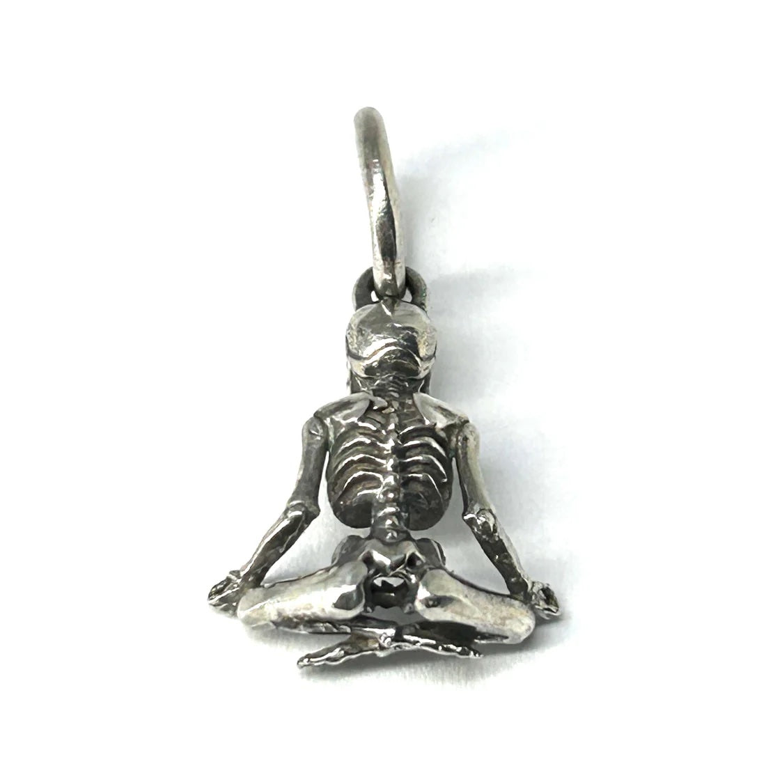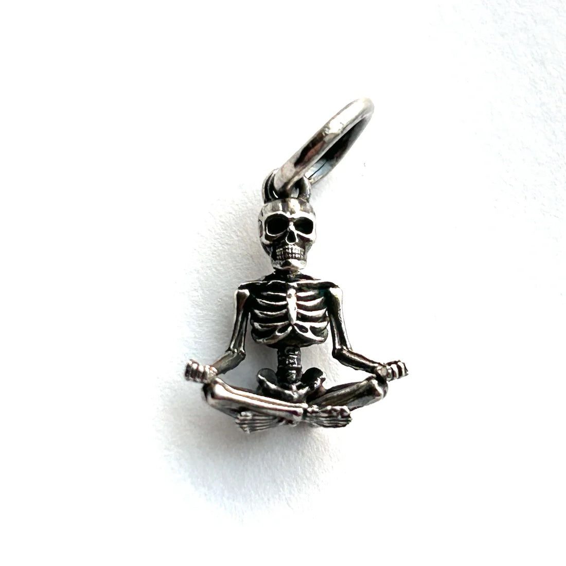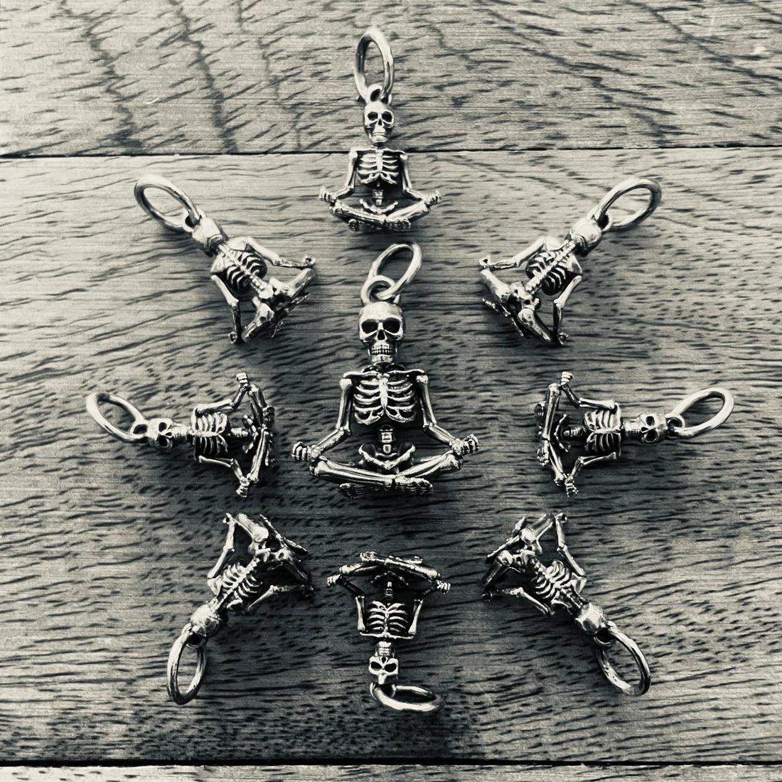 A skeleton, a framework for the body, can signify protection — as it protects organs and, being articulated, assists us in movement. It also reminds us to live… memento mori. Reminds us to enjoy life. Here… enjoy life and keep us safe. It can reflect the essence of being.