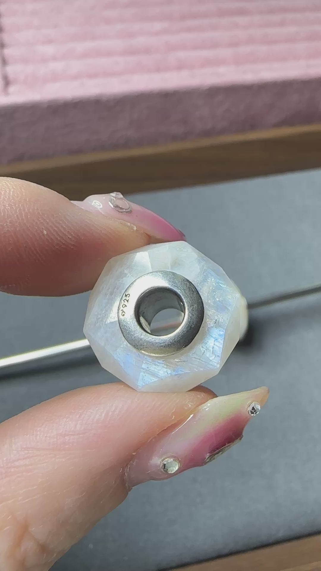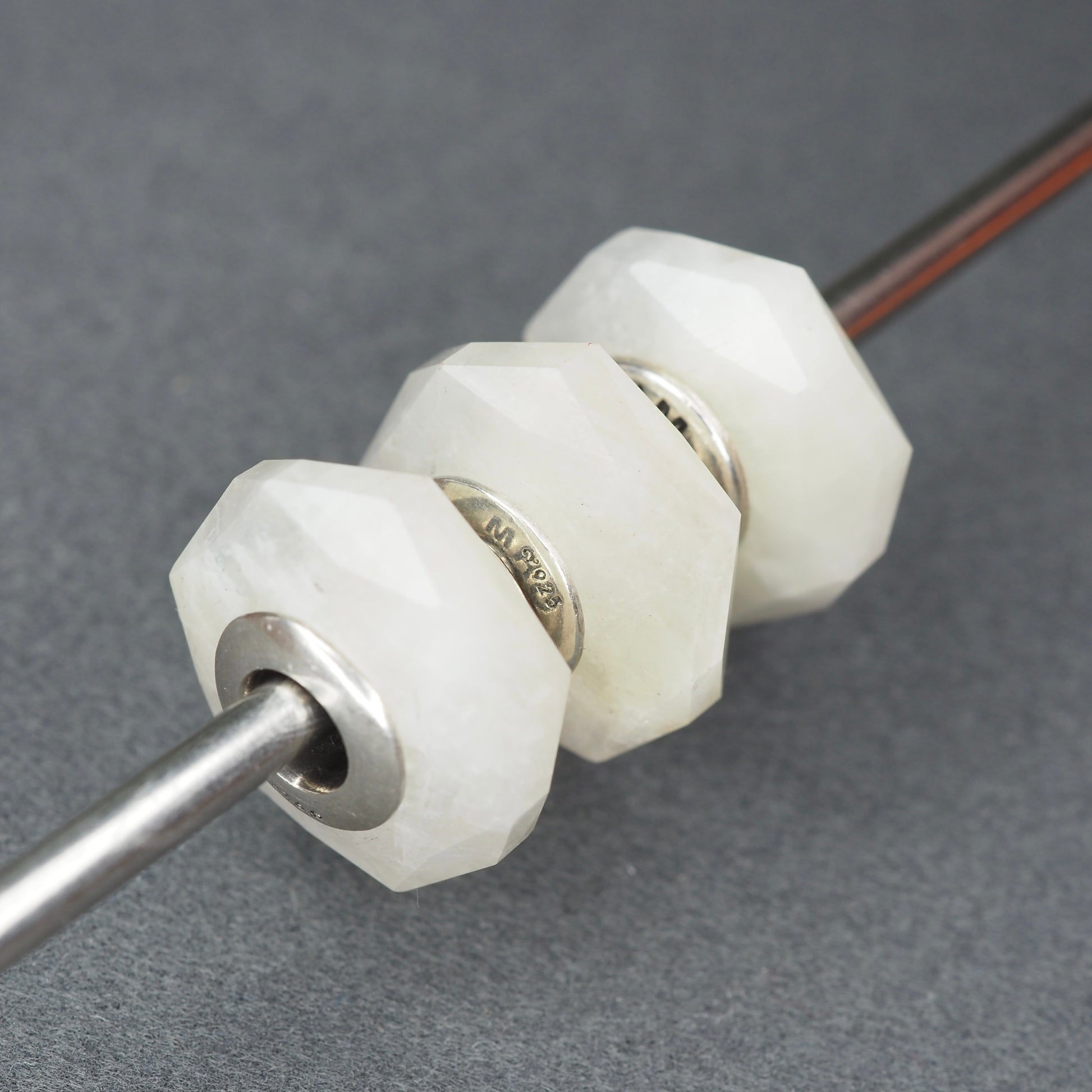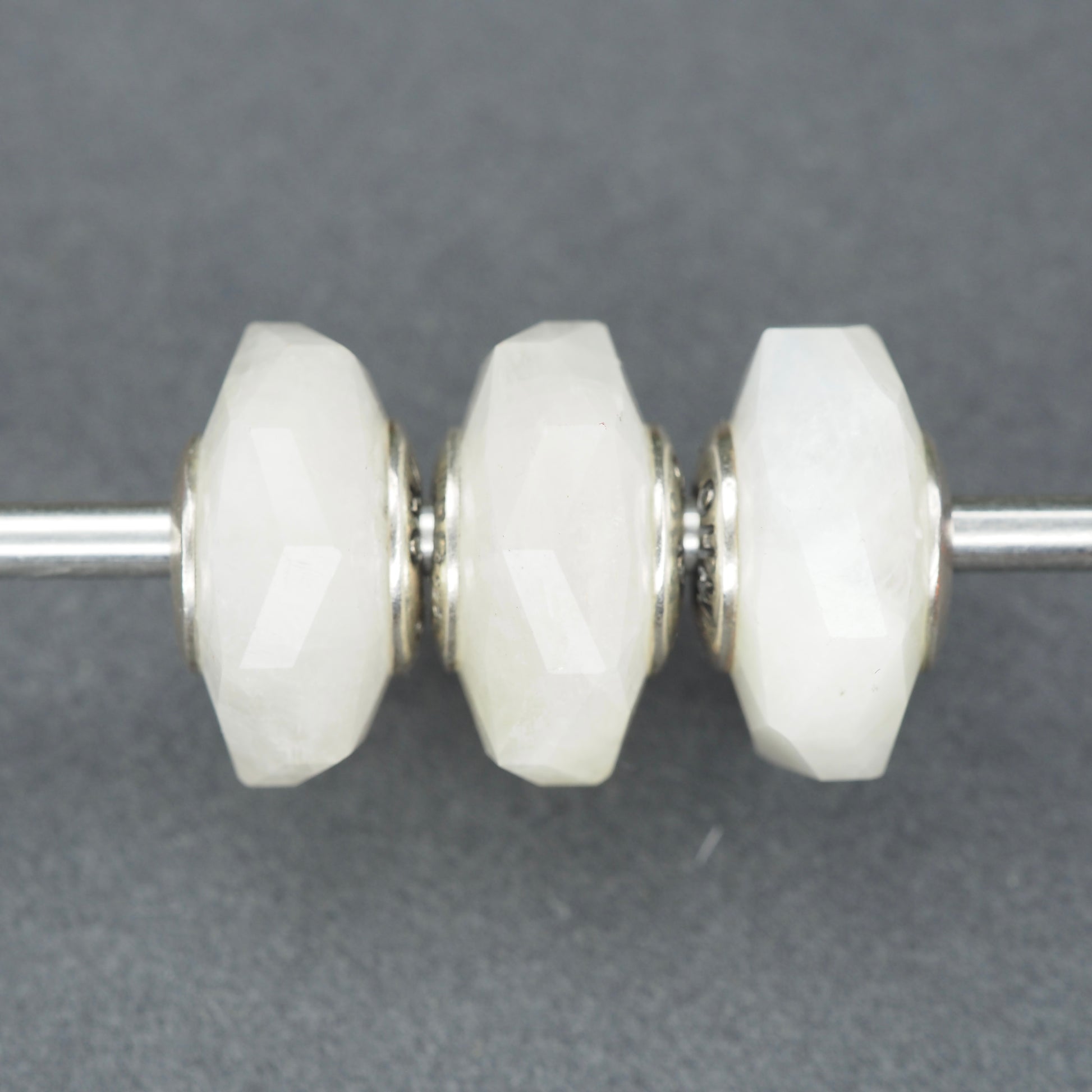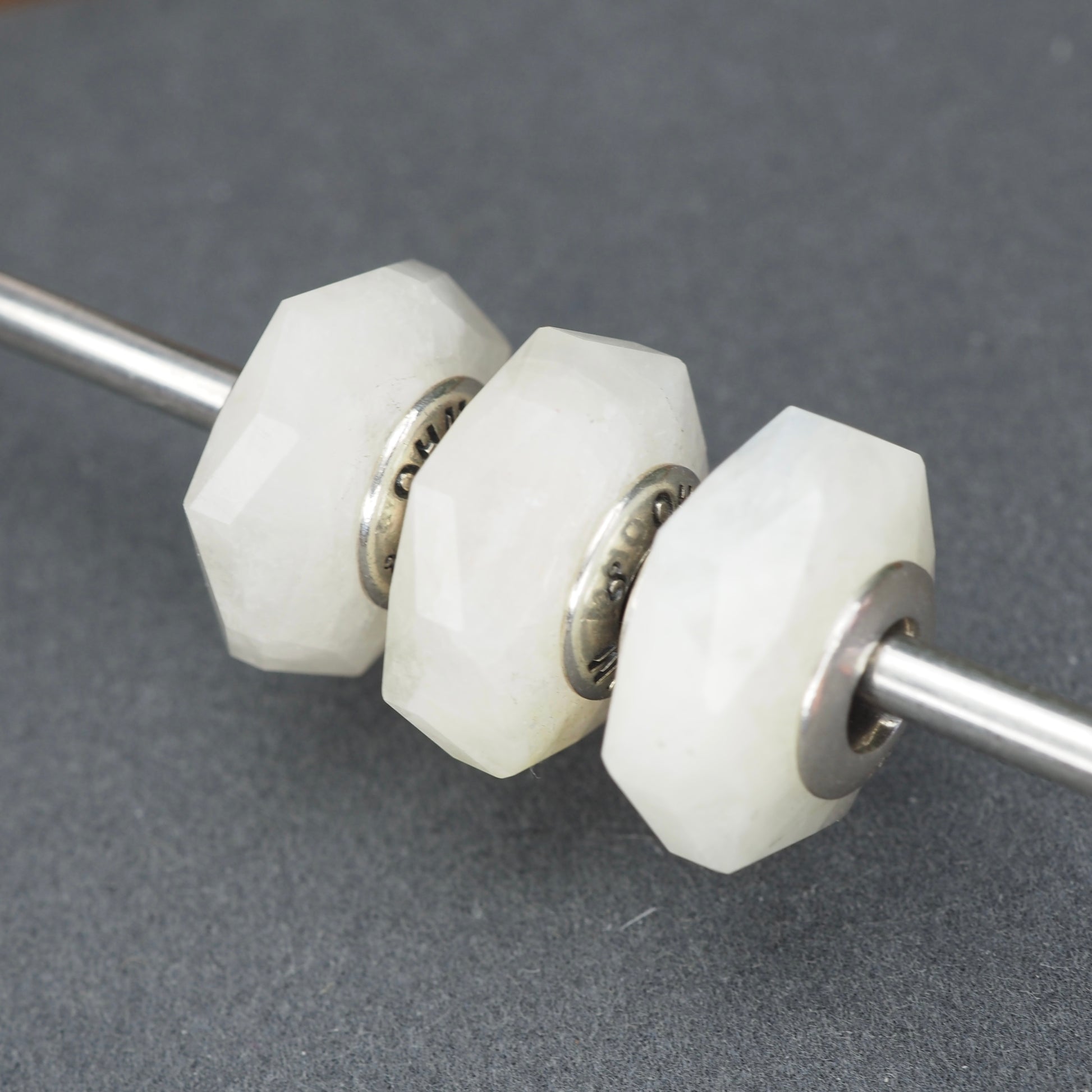 Three Rainbow Moonstones with distinct reflections: