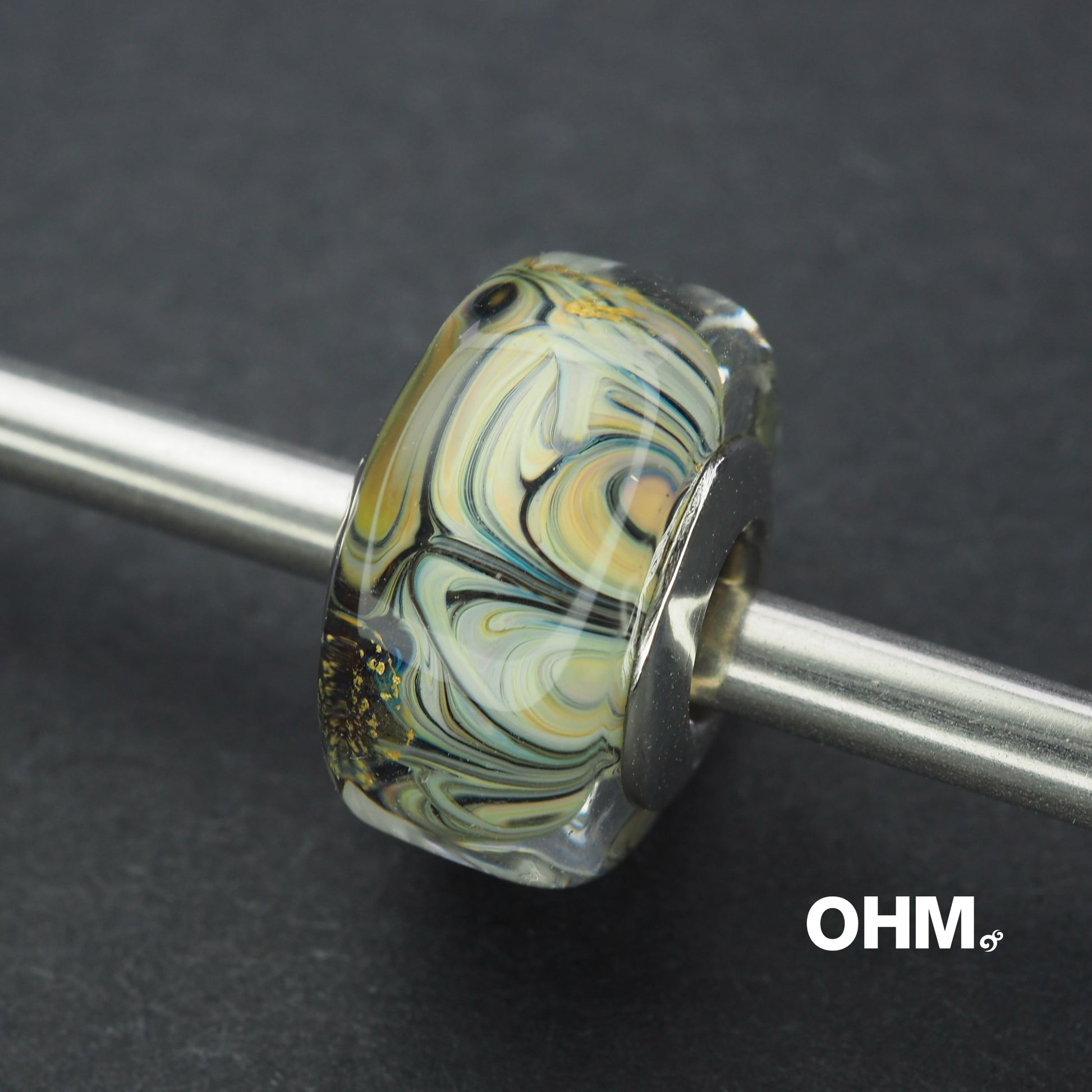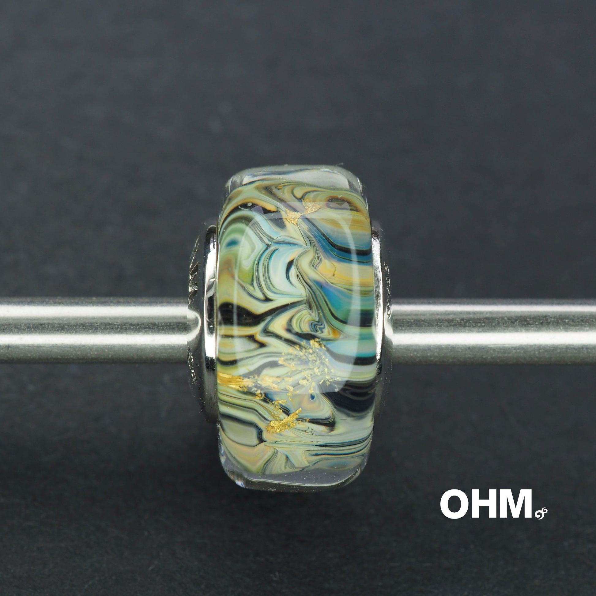 This glass has a hint of blue, and paired with black and gold tones, it's very romantic.