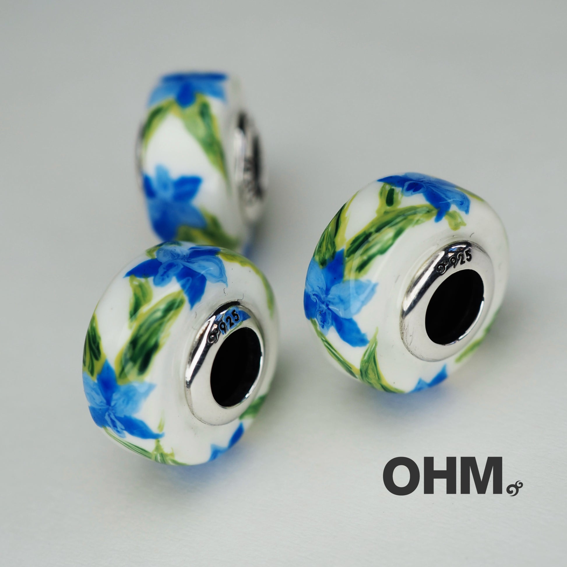 This new design features a 925 silver bead adorned with hand-painted enamel porcelain, showcasing the timeless beauty of the iris flower. The soft buttery-yellow background highlights the exquisite details of the blue blossoms, creating a perfect harmony of brightness and elegance—like a serene corner of a spring garden captured in jewelry form.